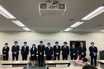 緊張の面もちの中での内定式と記念の集合写真を撮影しました。